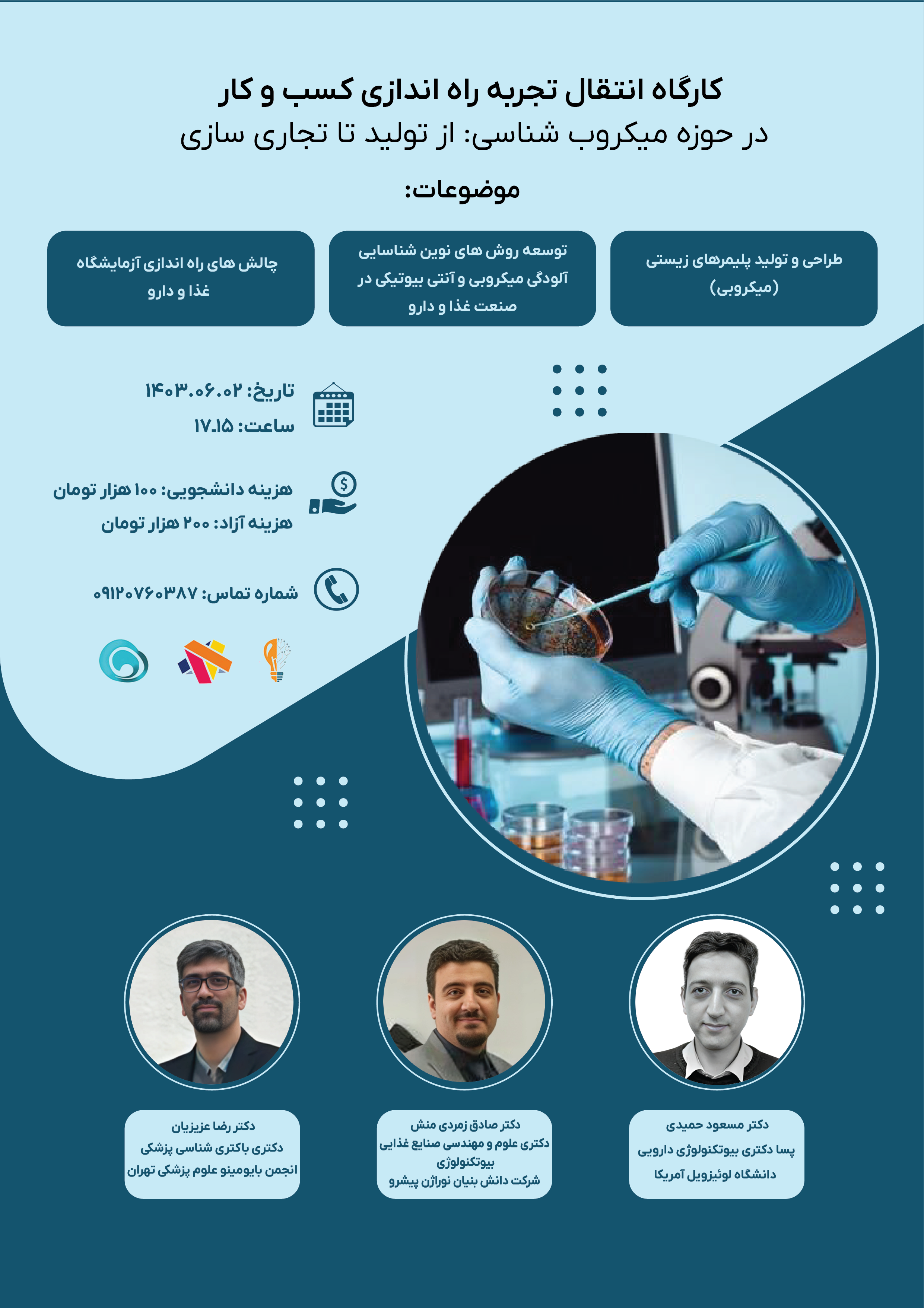کارگاه انتقال تجربه راه اندازی کسب و کار در حوزه میکروب شناسی: از تولید تا تجاری سازی